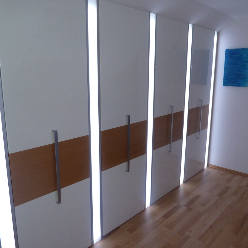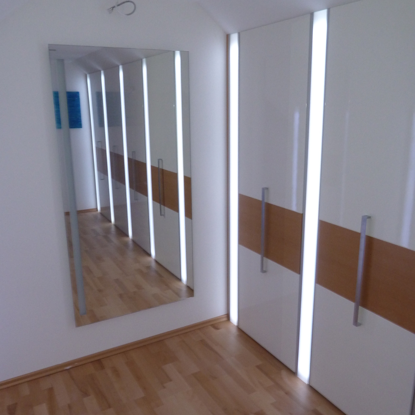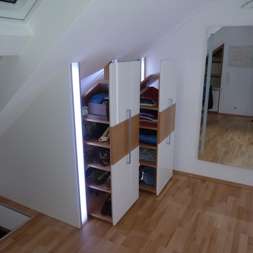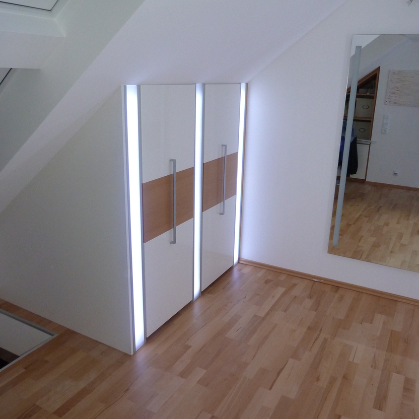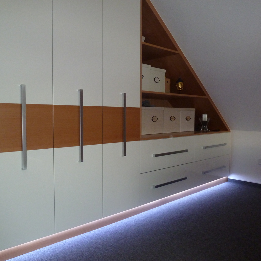 Einbauschrank mit Lichtinstallation und Deckenschräge